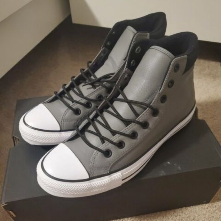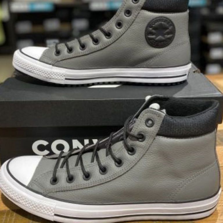 Цвет: Серые высокие кожаные кеды Converse All Star