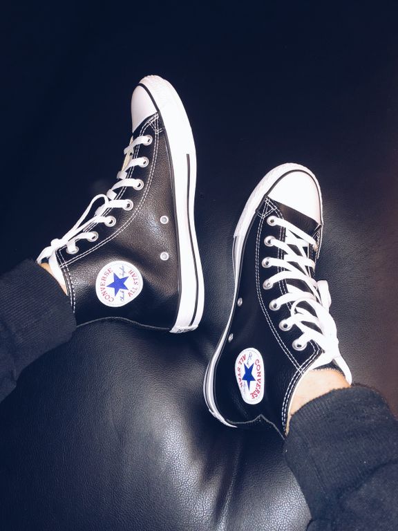 Цвет: Черные высокие кожаные кеды Converse All Star