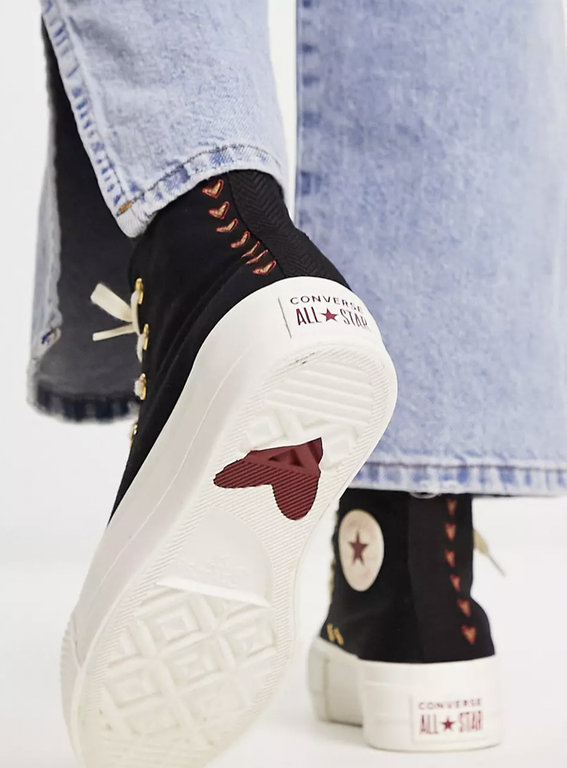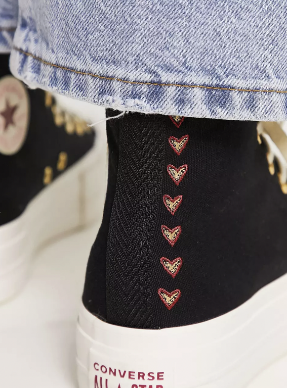 Converse All Star Lift Hearts Valentines Day черные высокие на платформе с сердечками