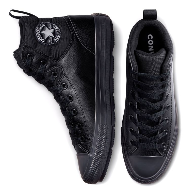 Цвет: Черные высокие кожаные кеды Converse