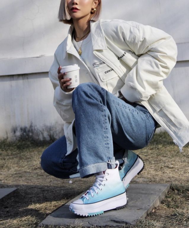 Цвет: Белые кеды Converse Run Star на платформе